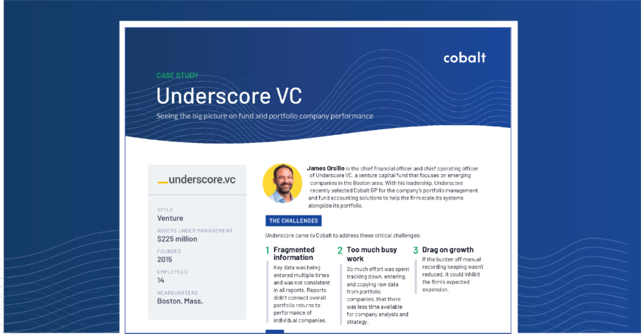 In this Q&A with James Orsillo, Underscore’s Chief Financial Officer, learn about the challenges the firm faced prior to implementing Cobalt and the benefits they’re seeing with the platform in action.